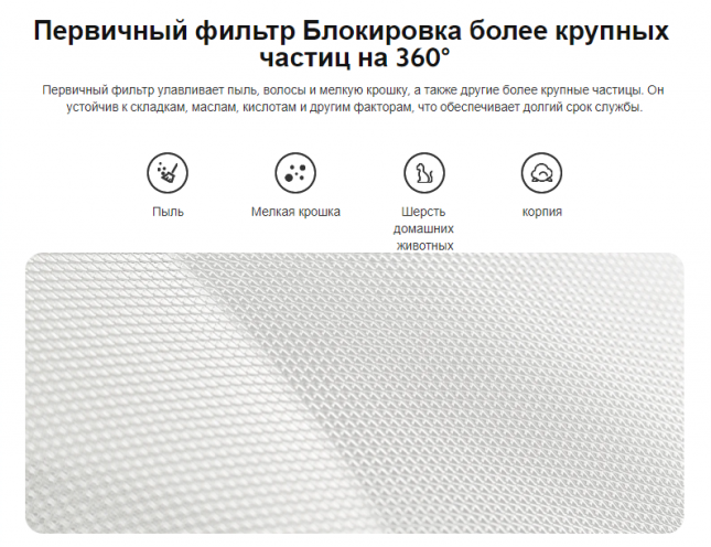 Фильтрация | дым, микропластик, неприятные запахи, перхоть, пыль, частицы PM2.5 |