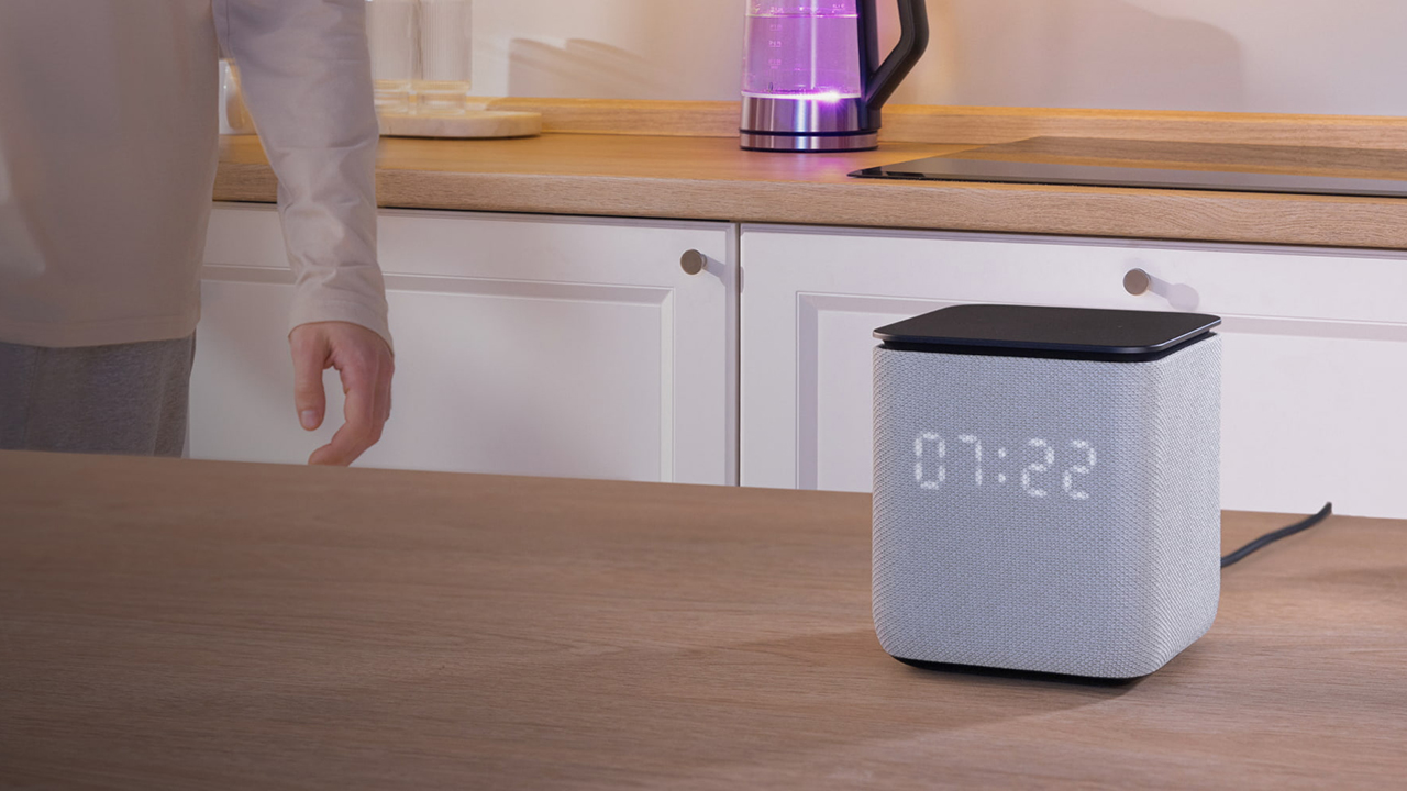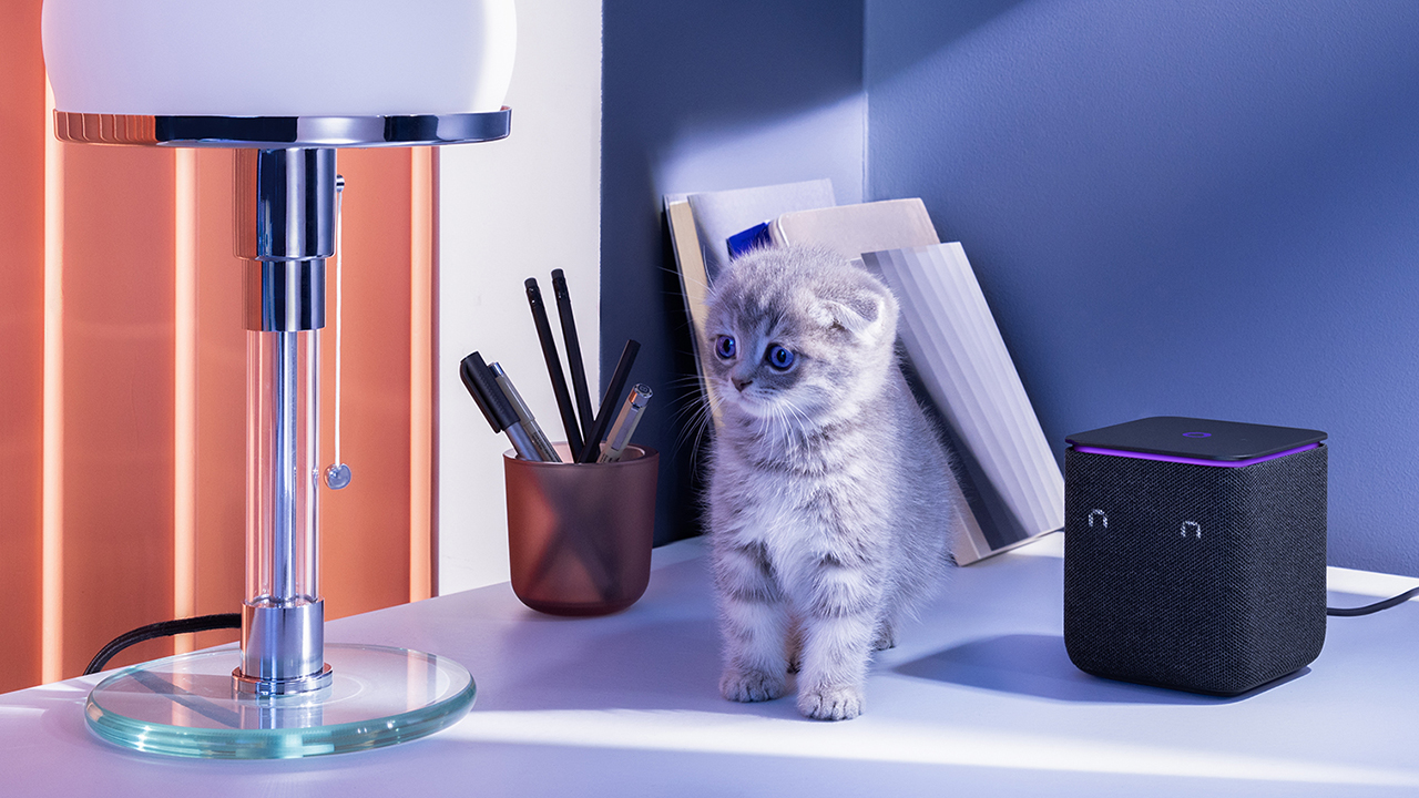 Приятный корпус с тканевой отделкой, доступный в разных расцветках текстильной части, не только придает колонке стильный внешний вид, но и создает приятные тактильные ощущения. Он также защищает динамики и слегка смягчает звук, а встроенный экран эффектно светится прямо на текстильной стороне.